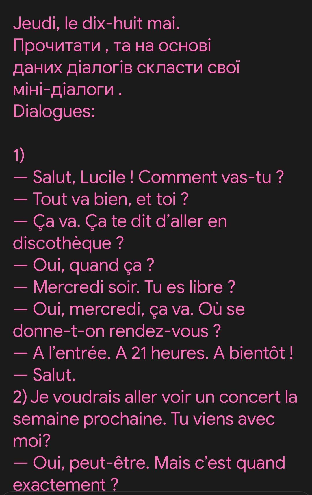 Mercredi soir. Tu es libre?