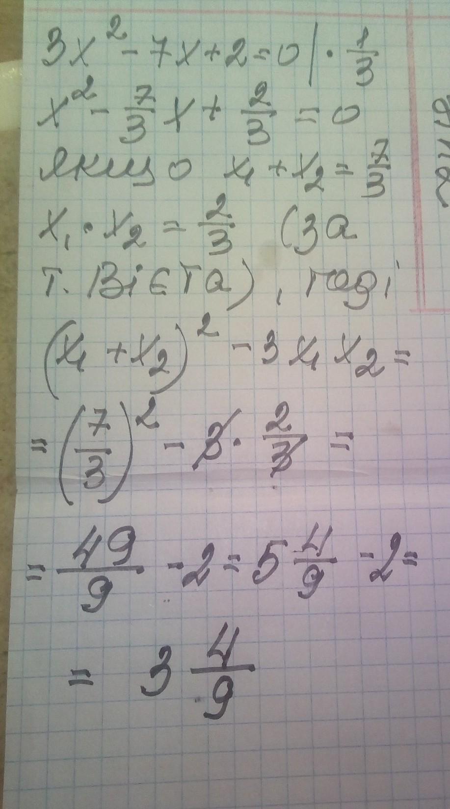 11.Не розв'язуючи рівняння, знайдіть значення виразу (x1 + x2)² - 3x1X2, якщо х, та х2 - корені рівняння: 3x² - 7x + 2 = 0.