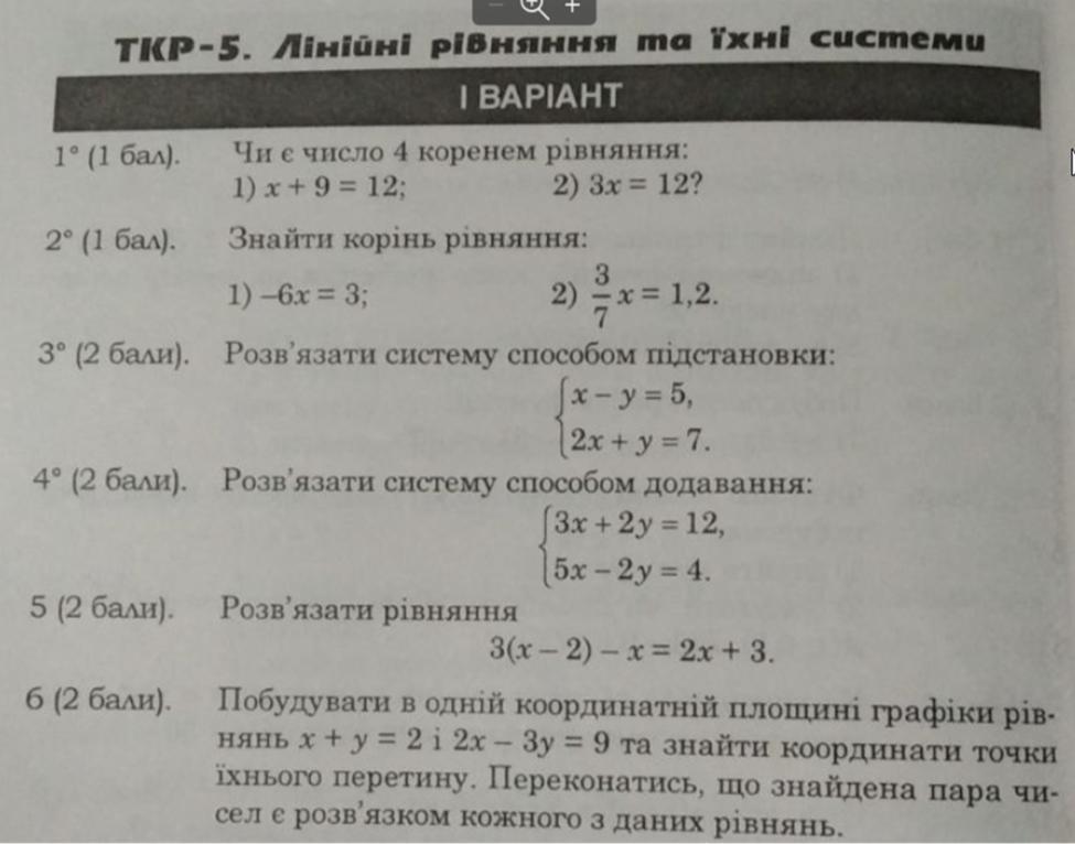 тематична контрольна робота з геометрії 7 клас лінійні рівняння та їх системи срочно 2 часа на то чтобы сделать