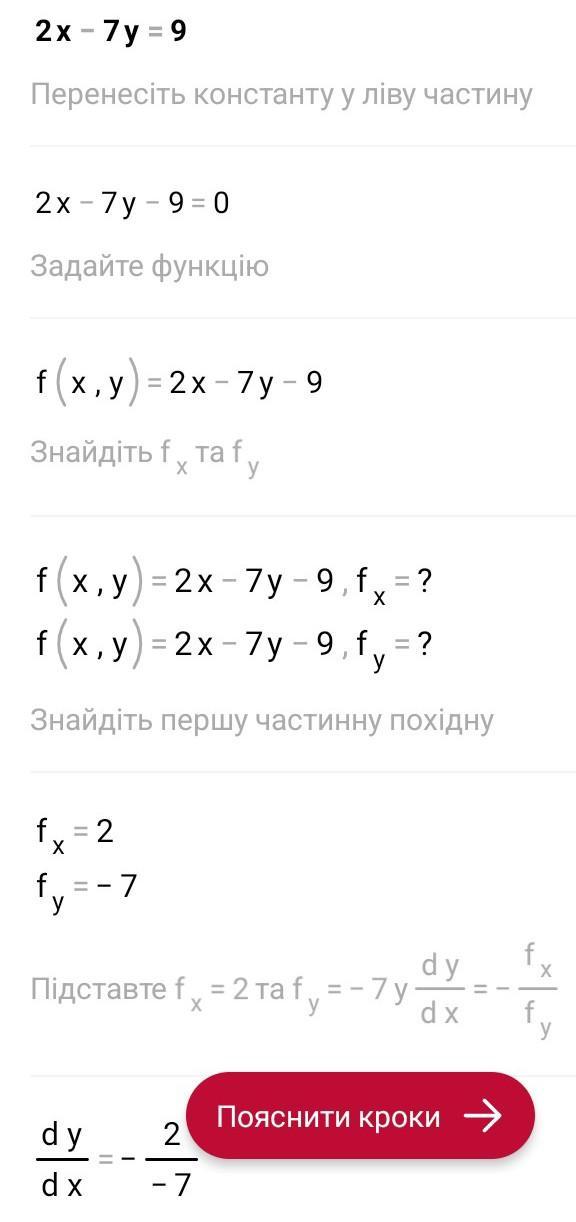 Для знаходження точок, через які проходить графік рівняння 2х -7y = 9, необхідно перетворити це рівняння в стандартну форму, а саме: y = (2/7)x - (9/7). Тепер це рівняння можна подати у вигляді y = kx + b, де k - коефіцієнт нахилу, а b - зміщення вісі y.