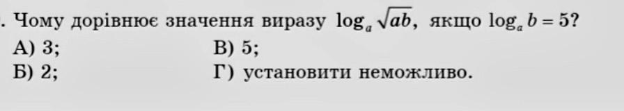 log_{a}(b) = 5 \:  \:  \:  \:  <  =  >  \: a {}^{5} = b \\  log_{a}( \sqrt[]{a b} ) =  log_{a}( \sqrt{a   \times  {a}^{5}}  )  =  log_{a}( \sqrt{a {}^{6} } )     =  \\  =  log_{a}(a {}^{3} ) = 3
