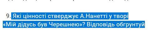 Отже, в творі "Мій дідусь був Черешнею" Анастасія Нанетті стверджує цінності сім'ї, природи, пам'яті та спадщини, а також простоти та щирості. Ці елементи використовуються для передачі глибинного змісту та надання особистої і соціальної значущості досвіду героя.