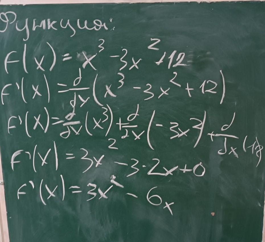 Дослідіть функцію f(x) = x^3 - 3x^2 + 12 на парність, проміжки монотонності, знайдіть точки екстремуму та екстремуми функції. Побудуйте графік цієї функції.