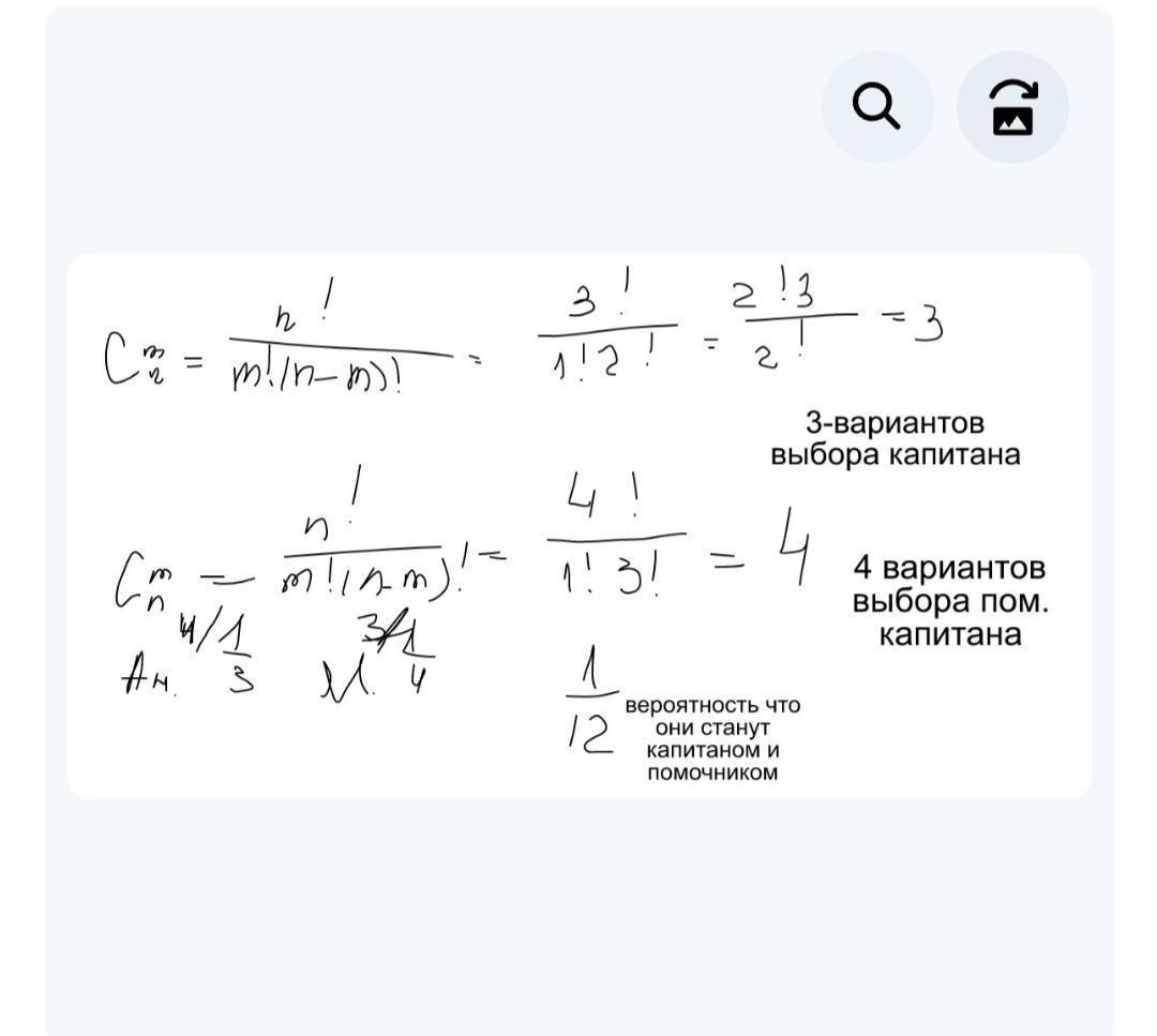 Ученики 5-го класса Анар, Эльшад и Сардар выдвинули свои кандида- туры на место капитана футбольной команды, а Джамиль, Фарид, Гусейн и Махмуд на место помощника капитана. Среди них должны выбрать 1 капитана и 1 помощника. Сколько есть вариантов выбора? Какова ве- роятность, что Анар станет капитаном, а Махмуд - его помощником? Решите задачу, построив схему «дерево».