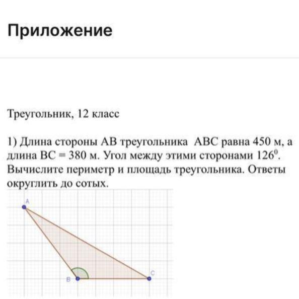 Периметр треугольника P(ABC) ≈ 1570,27 м