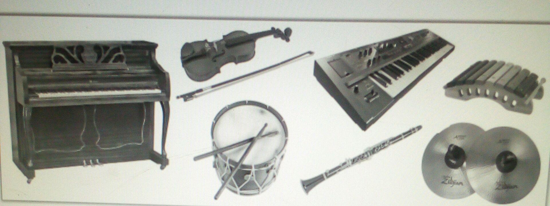 Look at the picture and say what musical instruments you can see. Which of them do we strike? Which of these instruments are with a keyboard?