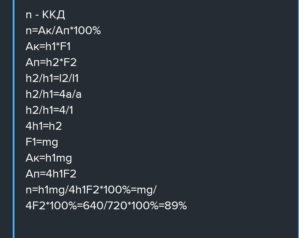 n=h1mg/4h1F2*100%=mg/4F2*100%=640/720*100%=89%