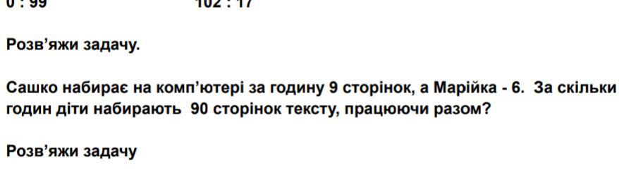 Відповідь: працюючи разом, діти набирають 90 сторінок тексту за 6 годин.