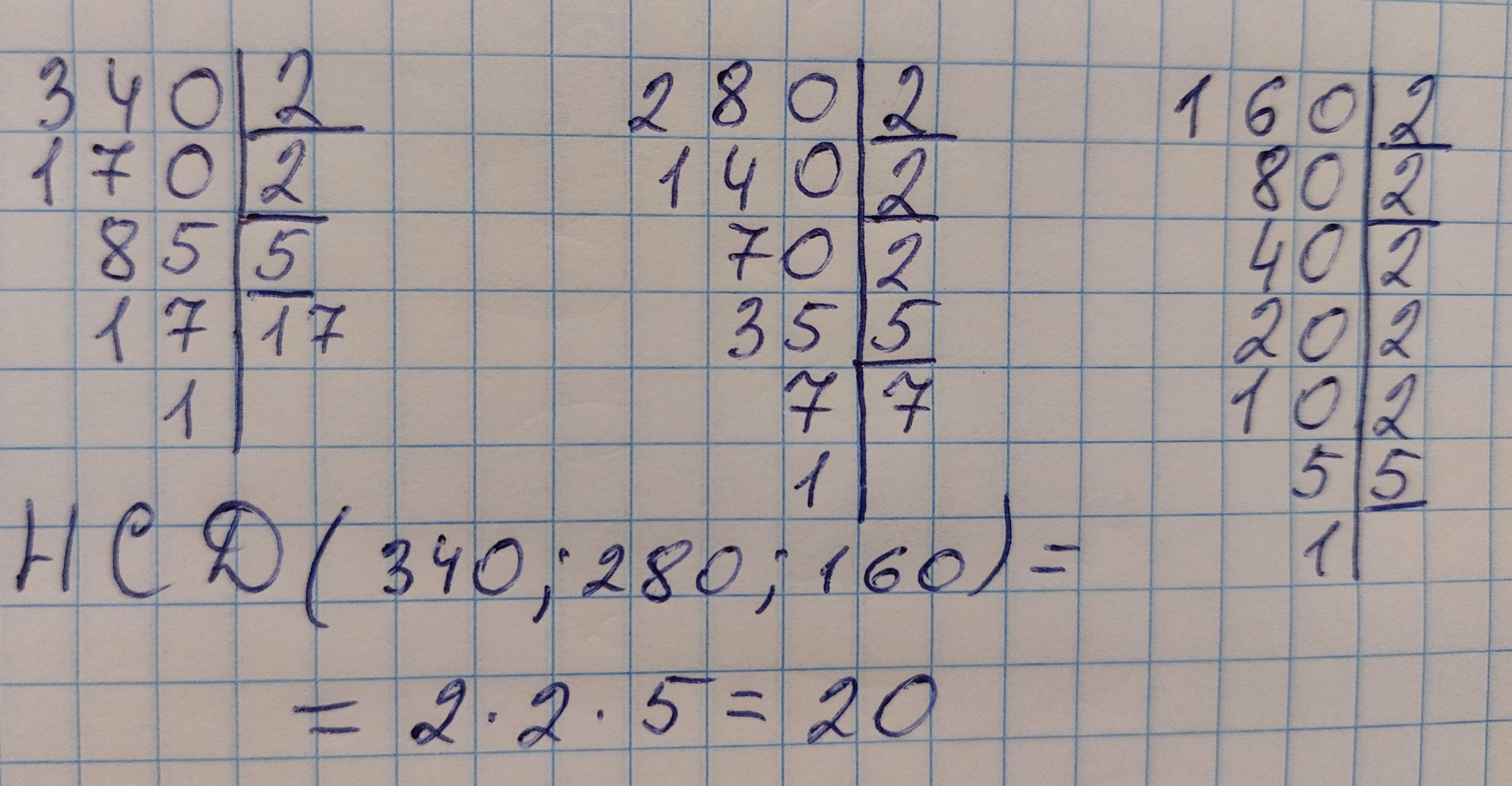 Яку найбільшу кількість однакових новорічних подарунків можна зробити за 340 горіхів 280 шоколадок і 160 мандаринок
