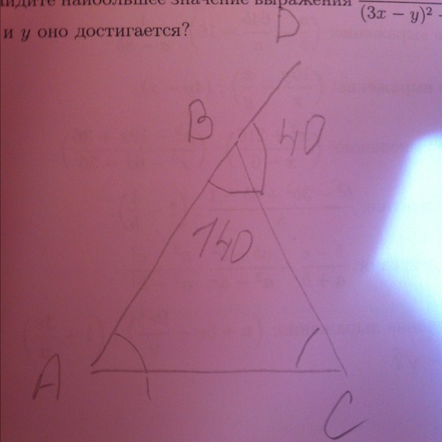 Один из внешних углов треугольника равен 40 градусов. Углы не смежные с данным внешним углом относятся как 3:5. Найти наибольший из них