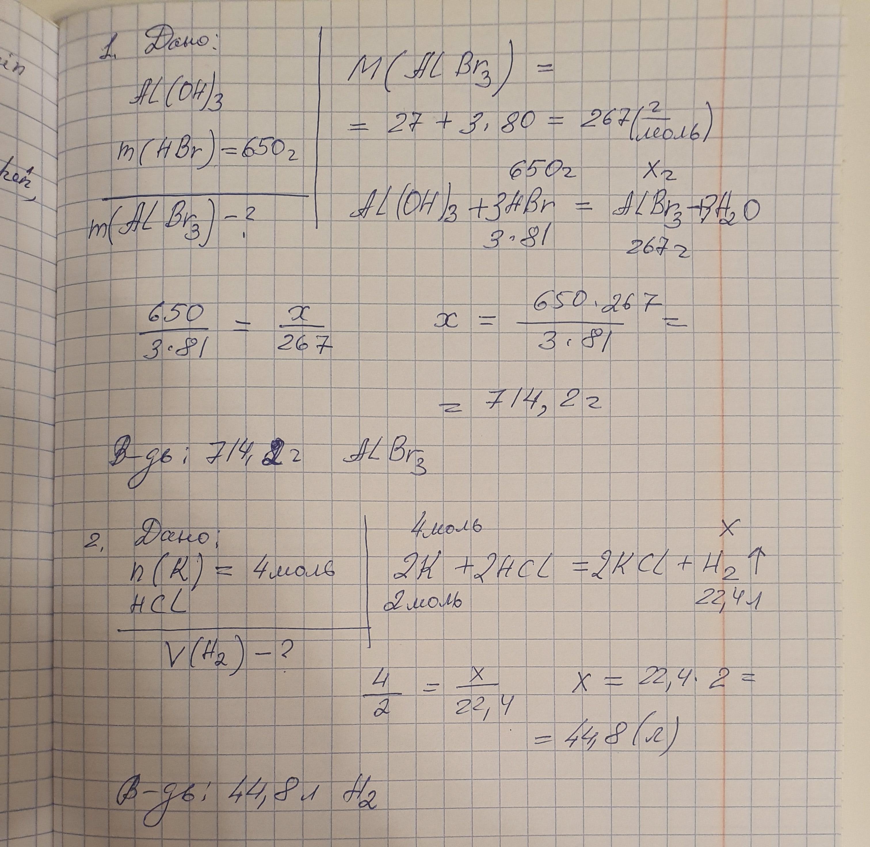№1.Обчисліть масу солі,що утвориться при взаємодії алюміній гідроксиду з бромідною кислотою масою 650г.