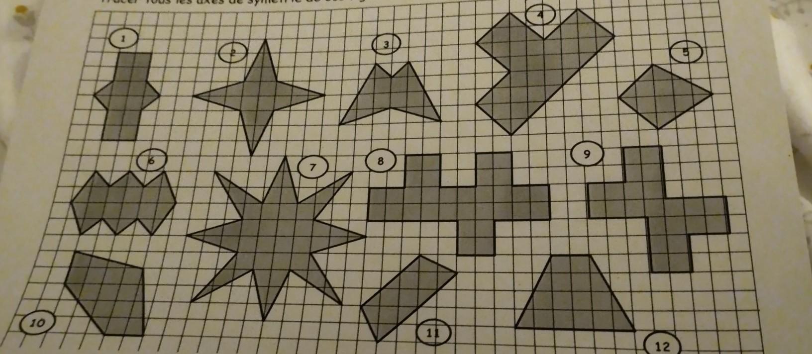 10 Exercice 12: Tracer tous les axes de symétrie de ces figures (s'il y en a).