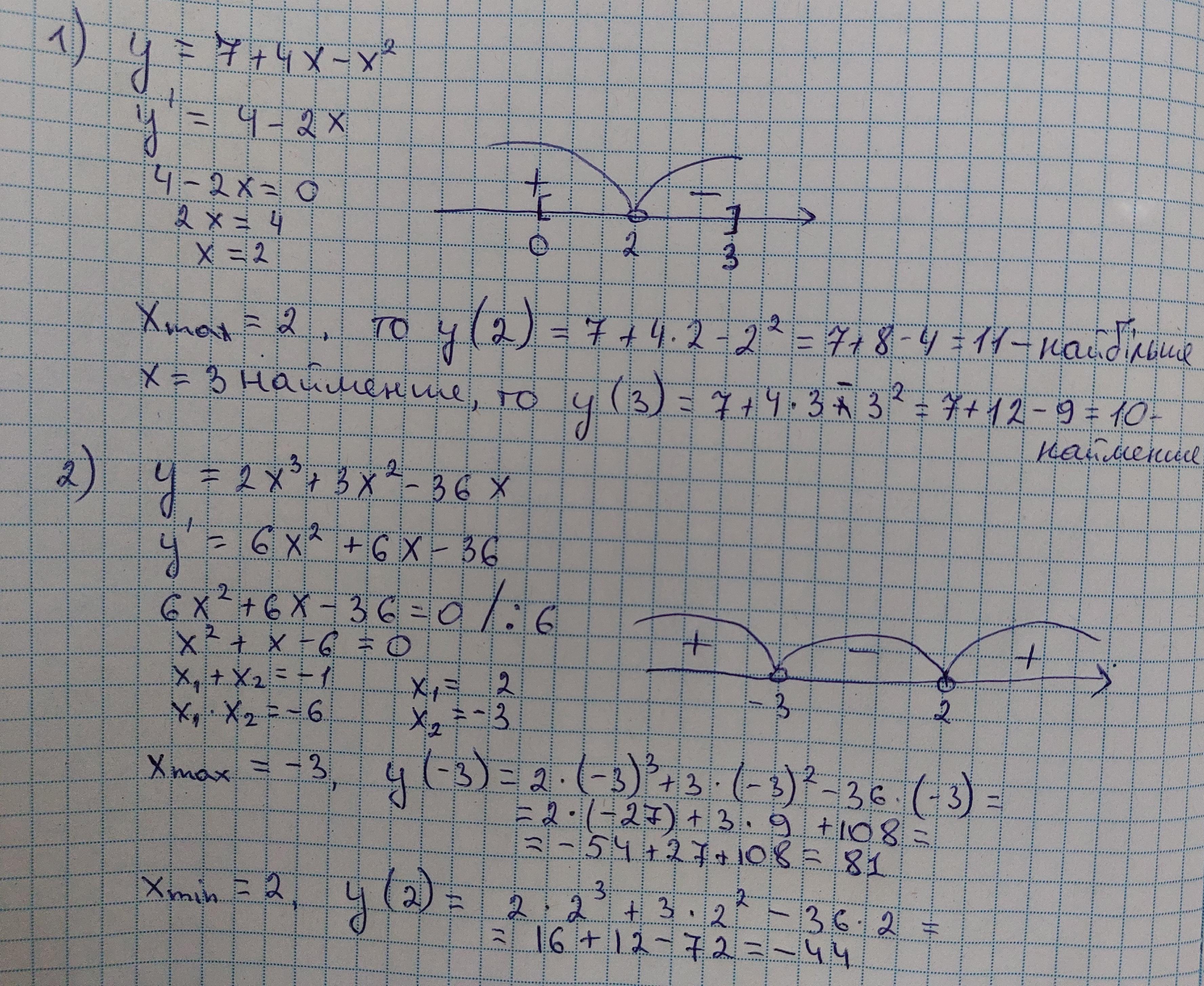 1)знайти найбільше та найменше значення функції у= 7+4х-х² [0;3]