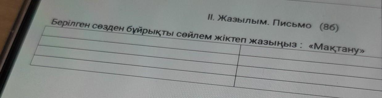 II. Жазылым. Письмо (86) Берілген сөзден бұйрықты сөйлем жіктеп жазыңыз: «Мақтану»