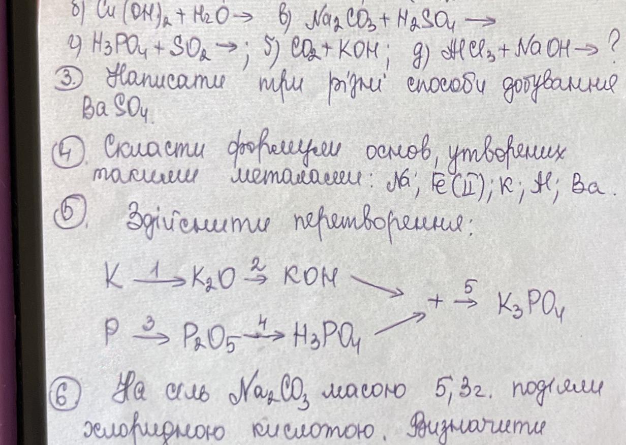 5. K + O2 = K2O +H2O = KOH + H3PO4 = K3PO4 + H2O