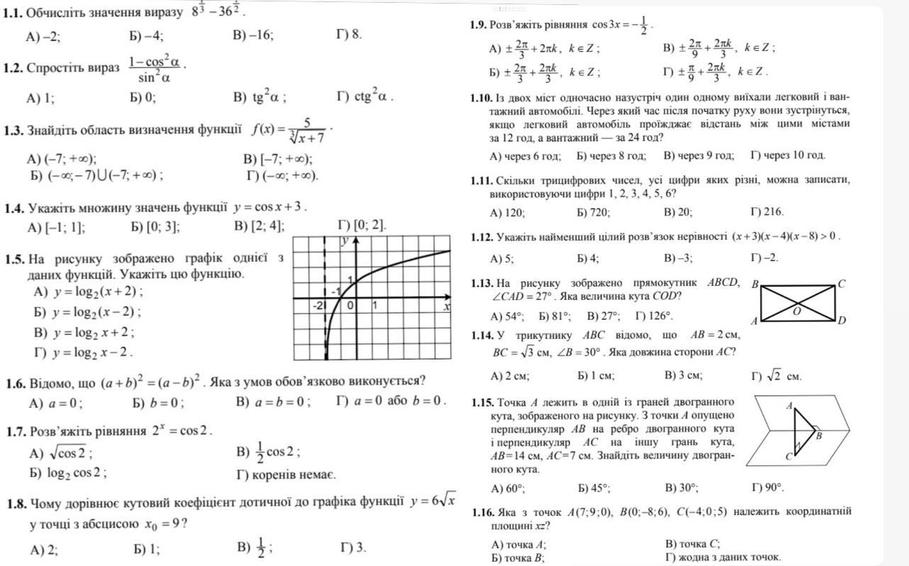 Завдання 1.1 - 1.16 мають по чотири варіанти відповідей, з яких тільки ОДНА відповідь ПРАВИЛЬНА. Оберіть правильну, на Вашу думку, відповідь та позначте її у бланку відповідей.