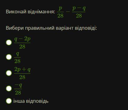 p/28 - (p-q)/28 = (p-p+q)/28 = q/28.