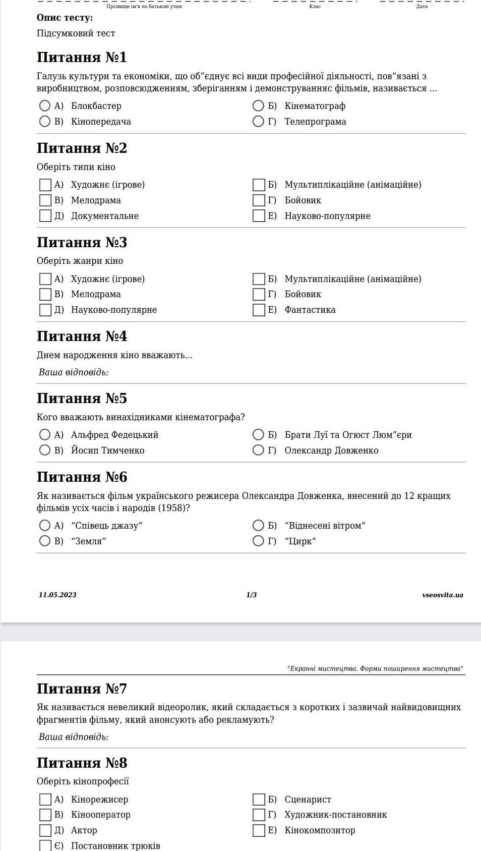 2 Художнє (ігрове), Документальне, Мультиплікаційне (анімаційне) ,