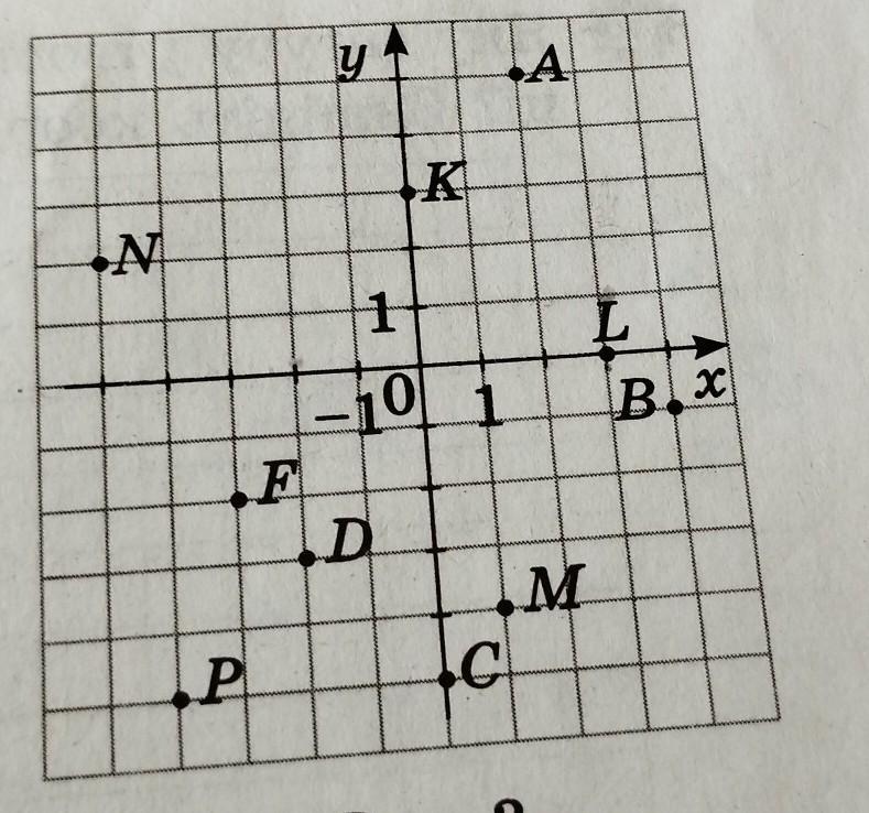 5 Установіть відповідність між точками (1-4), позна- ченими на рис. 3, та їх координатами (А-Д). 1 Точка А А Б В Г д 2 Точка D 3 Точка С 4 Точка F A (0;-5) Б (-2; -3) B (-3;-2) Г (2; 5) Д (-5; 0) 1 2 3 4 оломи то- N Е D у g K 1 10 D
