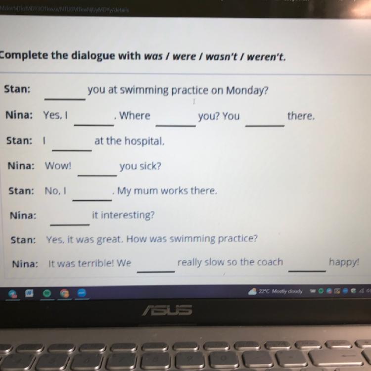 3 Complete the dialogue with was / were / wasn't / weren't.