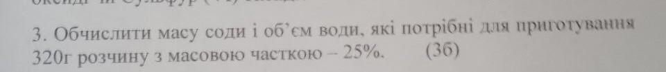 Відповідь: 240 г води та 80 г соди.
