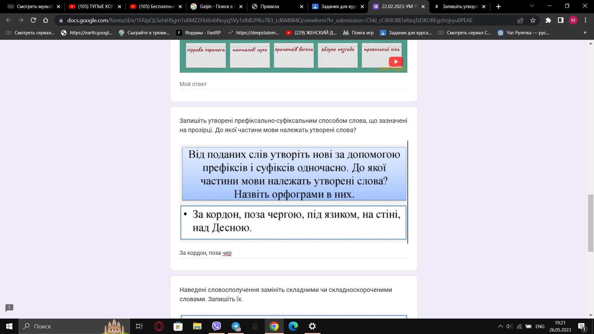 Ответ: Запишіть утворені префіксально-суфіксальним способом слова, що зазначені на прозірці. До якої частини мови належать утворені слова?
