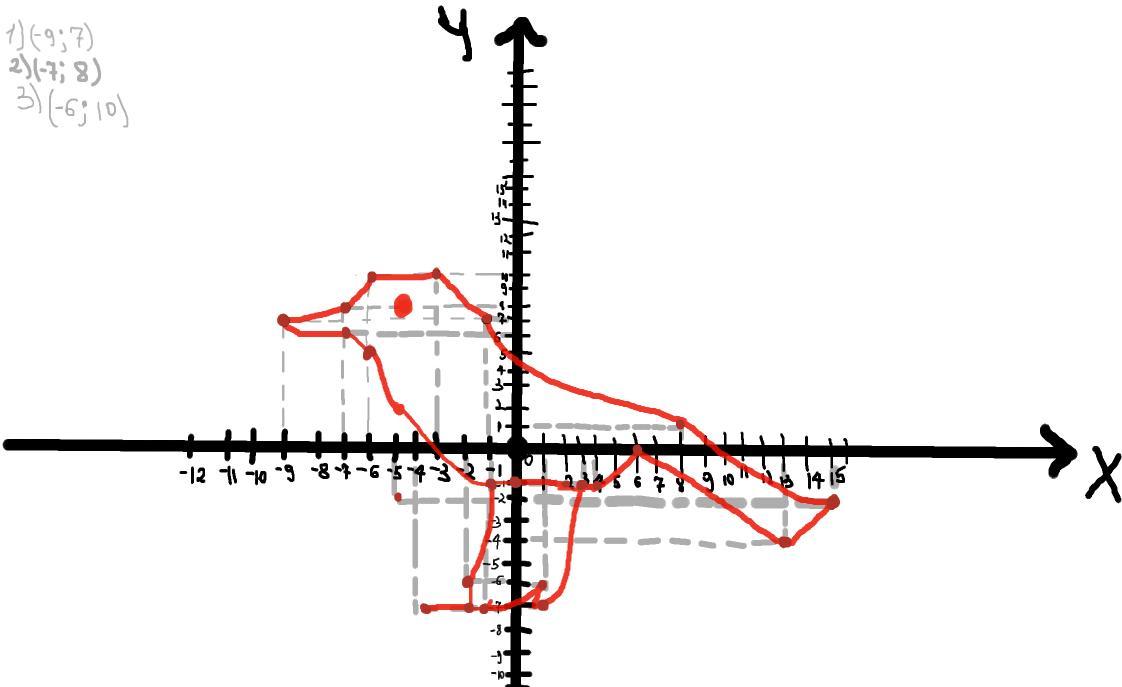 За даними координатами точок намалювати фігуру в прямокутній системі координат.