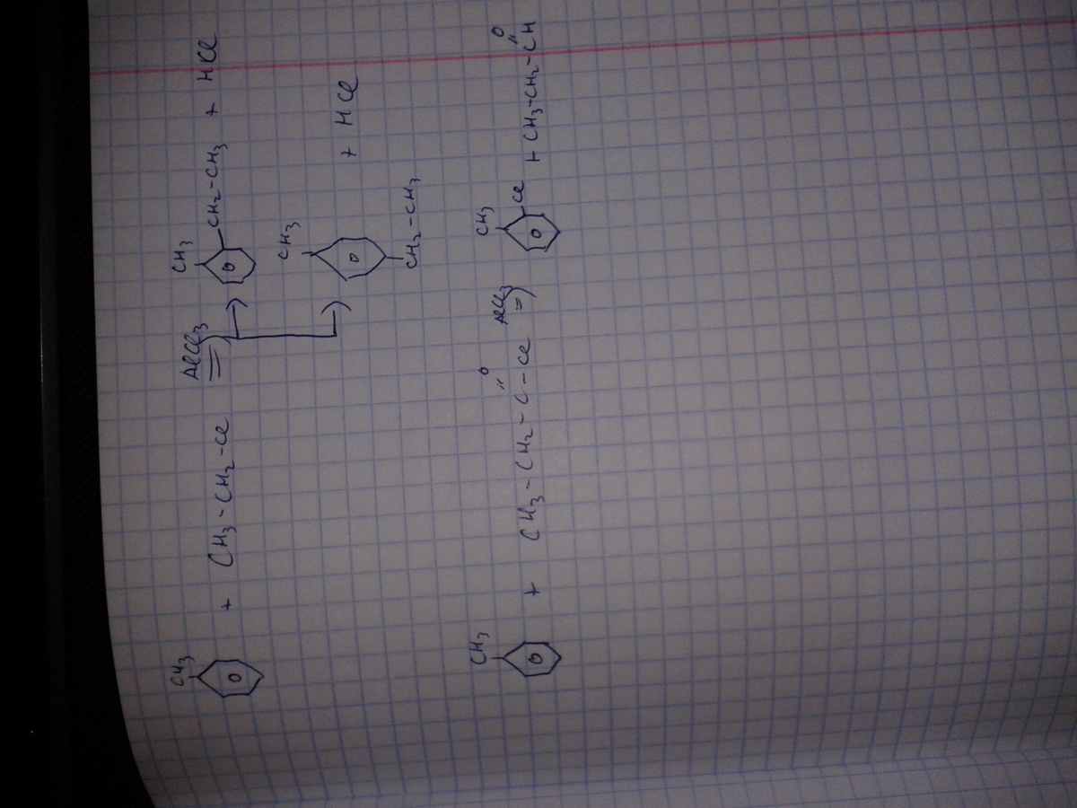 ,t°; CH3CH2Cl/AlCl3; CH3CH2COCl/AlCl3.