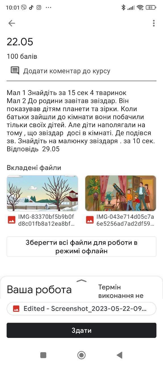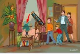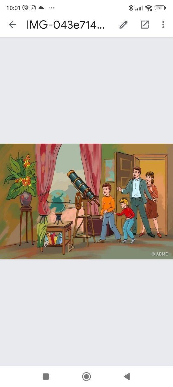 До родини завітав звіздар. Він показував дітям планети та зірки. Коли батьки зайшли до кімнати вони побачили тільки своїх дітей. Але діти наполягали на тому , що звіздар досі в кімнаті. Де подівся зв. Знайдіть на малюнку звіздаря