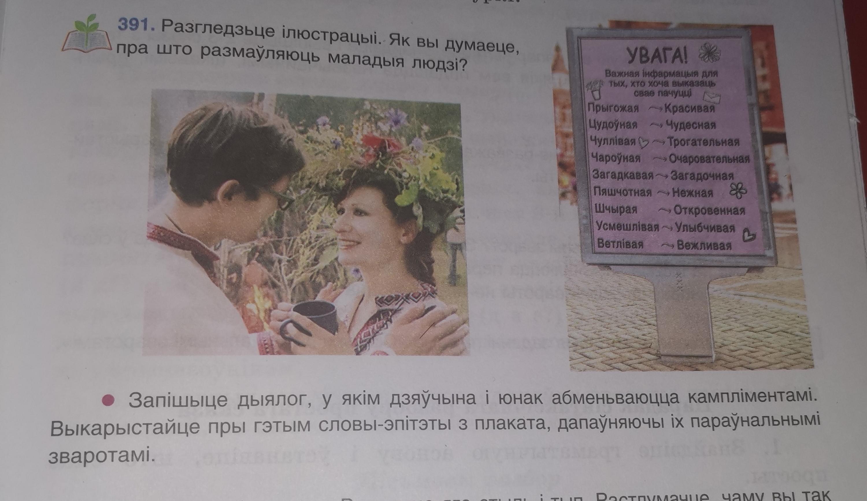 хлопец робіць кампліменты або суцяшае дзяўчыну.