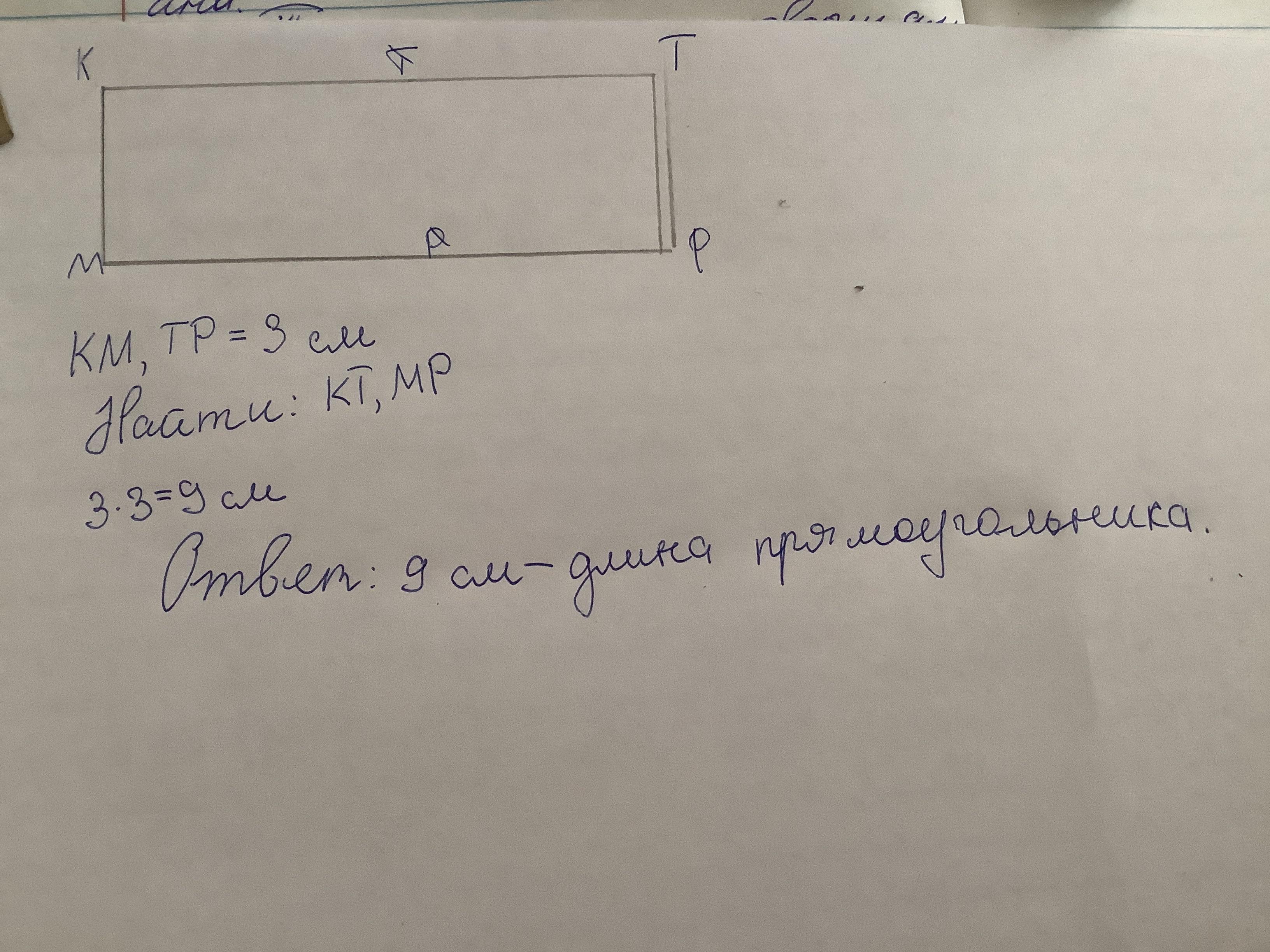 Накресли прямокутник КМРТ та обчисли його периметр,якщо ширина дорівнює 3 см,а довжина - у 3 рази довша за ширину.