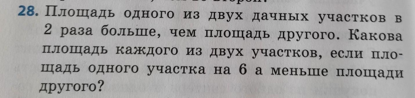 За другою умовою - різниця цих відрізків - 6 а, - це і є площа першого участка.