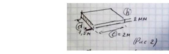 Терміново даю 30 балів №2 (2 бал) Якою є маса прямокутника розміром 2х1,5 м вирізаного із заліза товщиною 2 мм. (Рис 2)