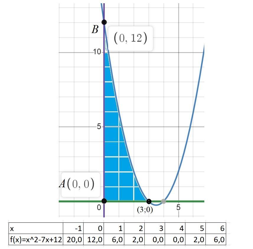 y=x^2-7x+12; y=0; x=0. (См. скриншот).