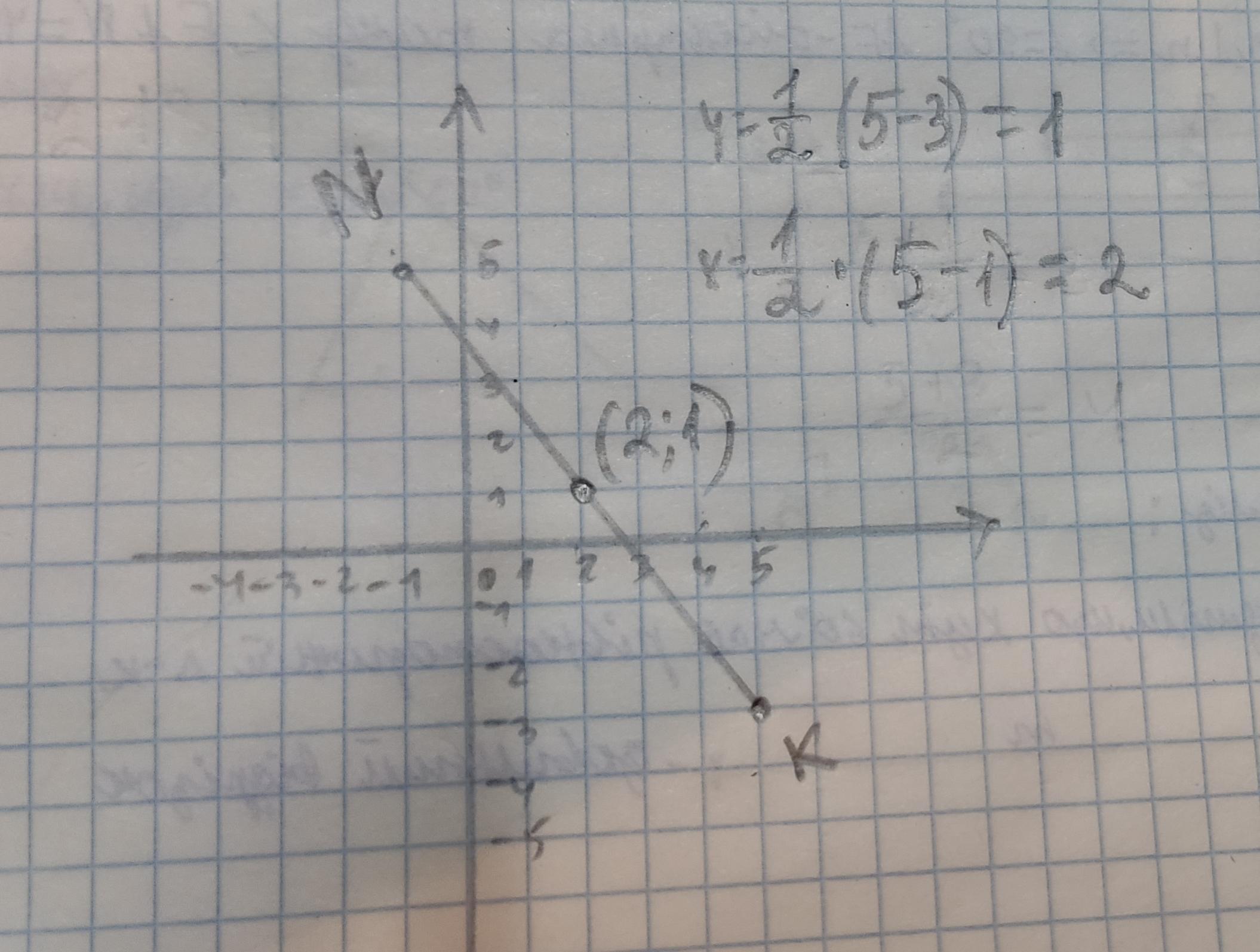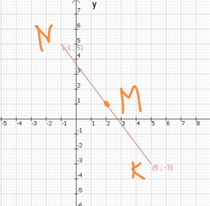 Позначте точки K (5;-3) і N (-1; 5). Знайти середину відрізка KN і запишіть її координати.(Будь ласка, намалюйте на листочку, і позначіть)