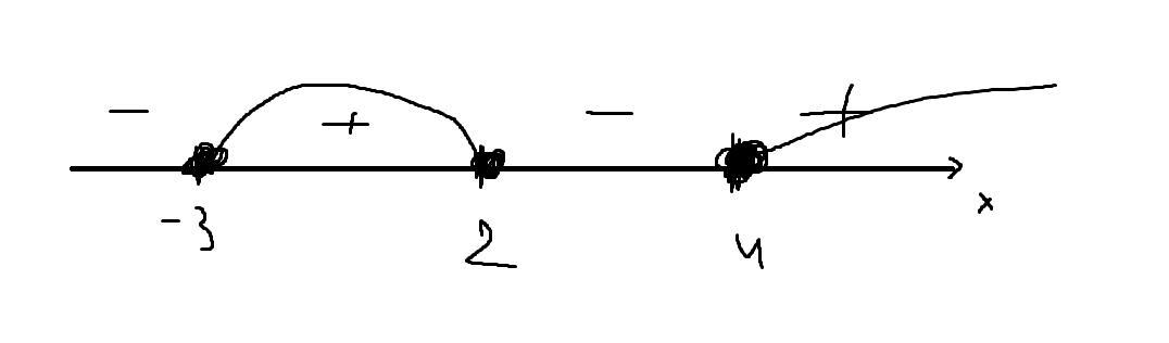 x ∈ (-∞; -3] ∪ [2; 4) ∪ (4; +∞)