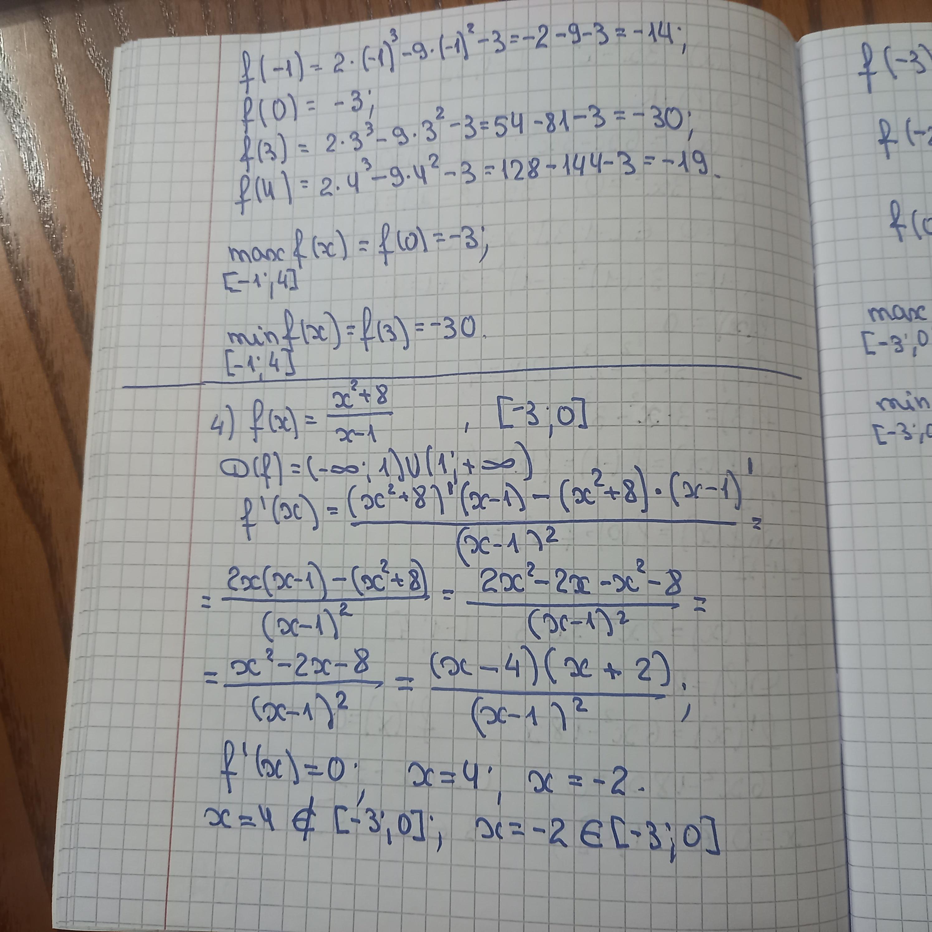 Ви не відповіли на головне питання: найбільше, найменше ЗНАЧЕННЯ ФУНКЦІЇ на даному проміжку .