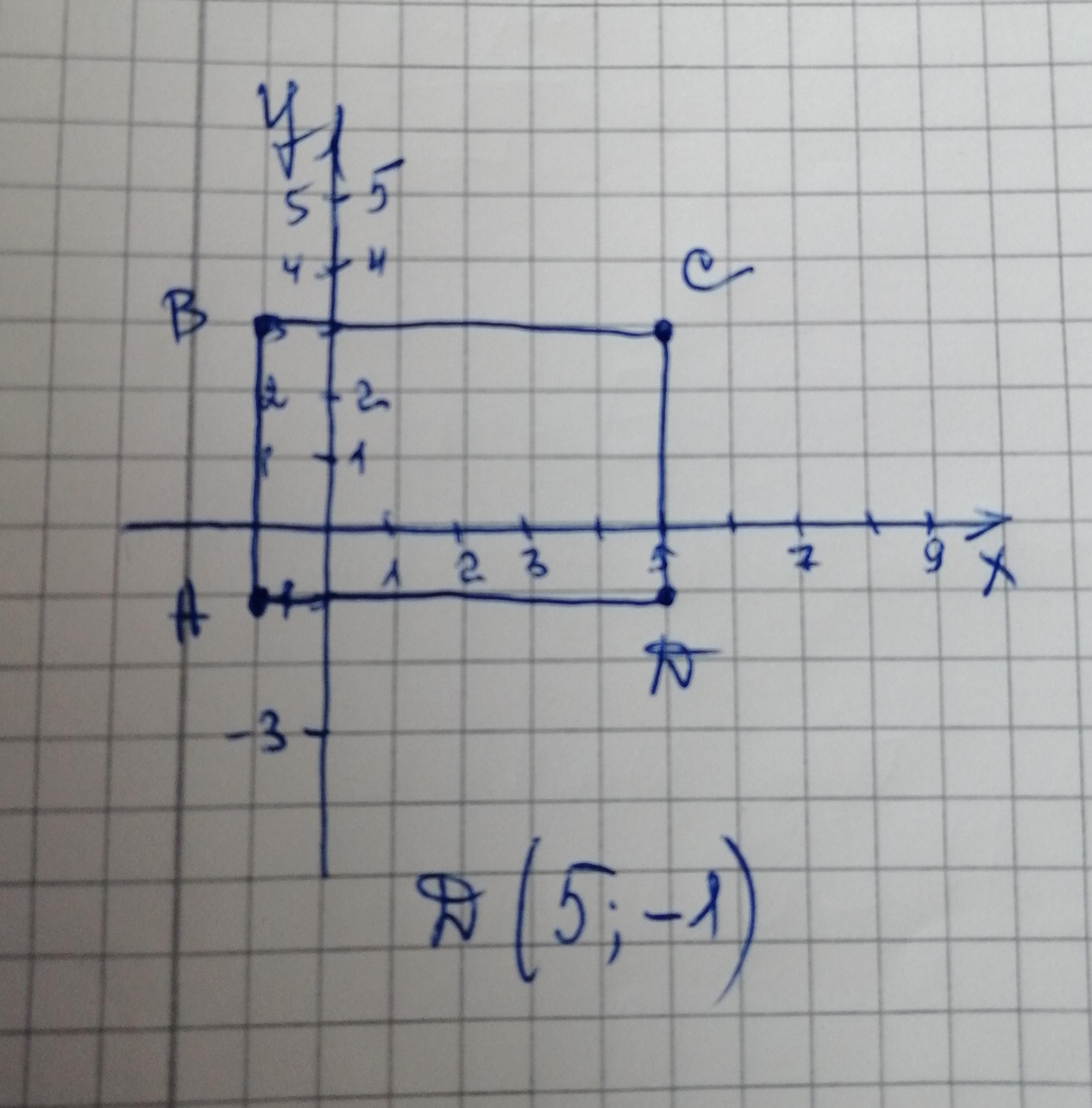 А (-1;-1), В (-1;3), С(5;3). Знайдіть коодинати точки D.