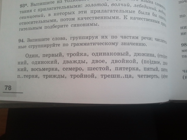 Существительные: Тройка, дюжина, восьмёрка, пятёрка, пяток, пятерня, трешница, четверть.