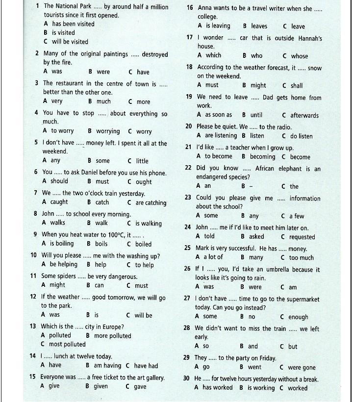 22A 23A 24B 25.A 26B 27B 28A 29B 30C