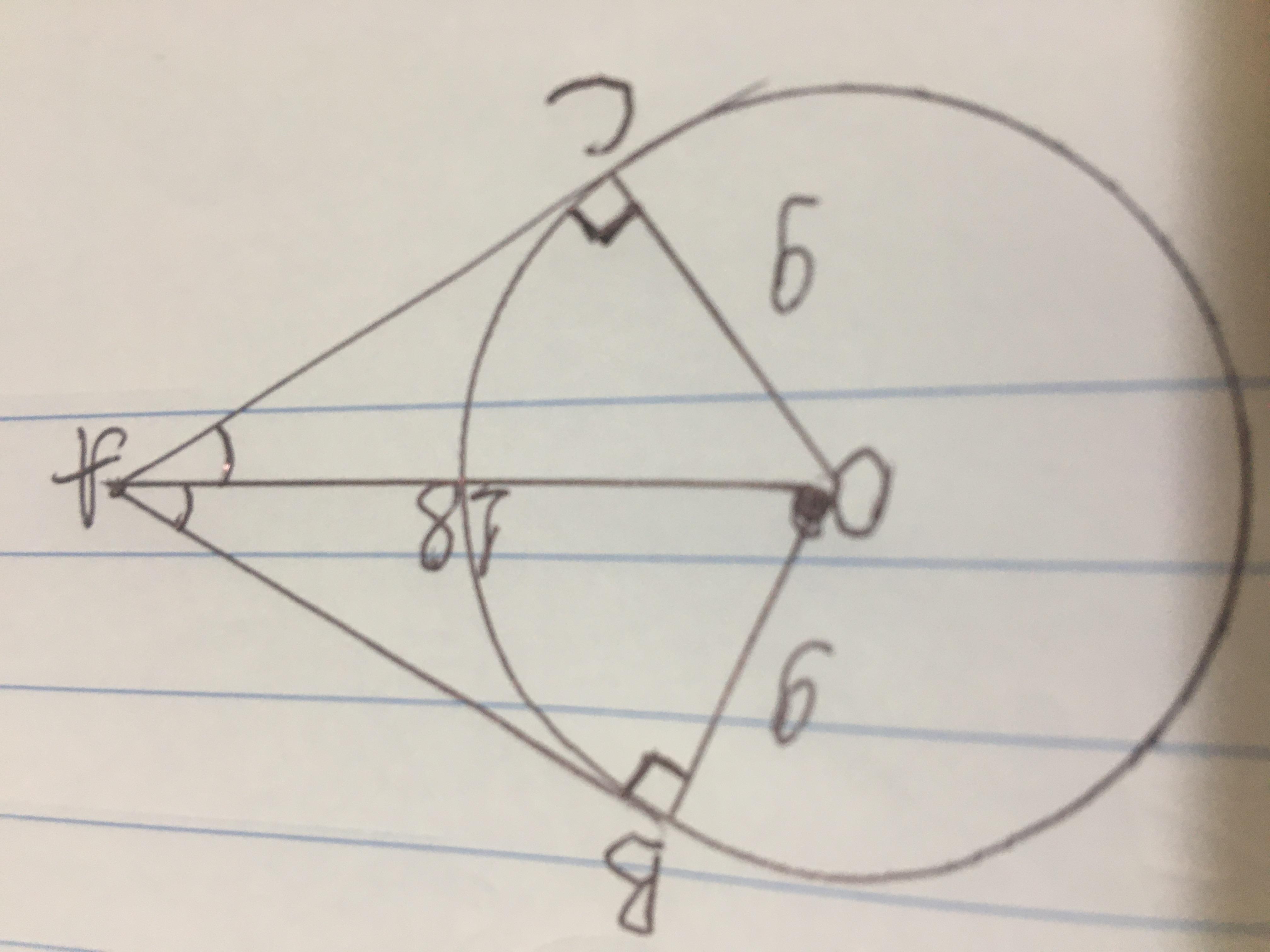 Ми можемо скористатись властивістю трикутника, що каже, що дотична до кола є перпендикуляром до радіуса, проведеного до точки дотику. Отже, кут між радіусом і дотичною дорівнює 90°.