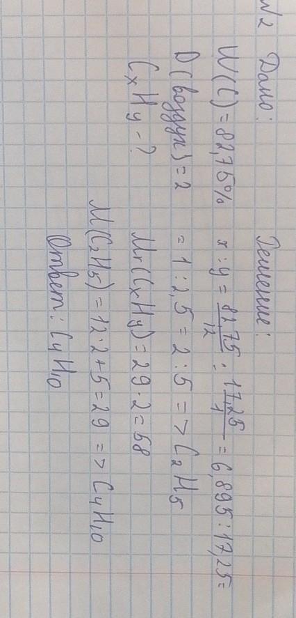 2. Визначити молекулярну формулу вуглеводню, якщо масова частка карбону 82,75%, а відносна густина за повітрям 2.