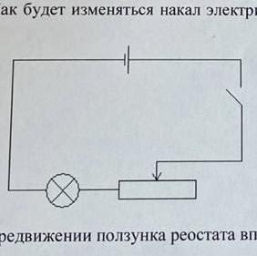 При передвижении ползунка реостата вправо, его сопротивление увеличится. Следовательно увеличится сопротивление и всей цепи.