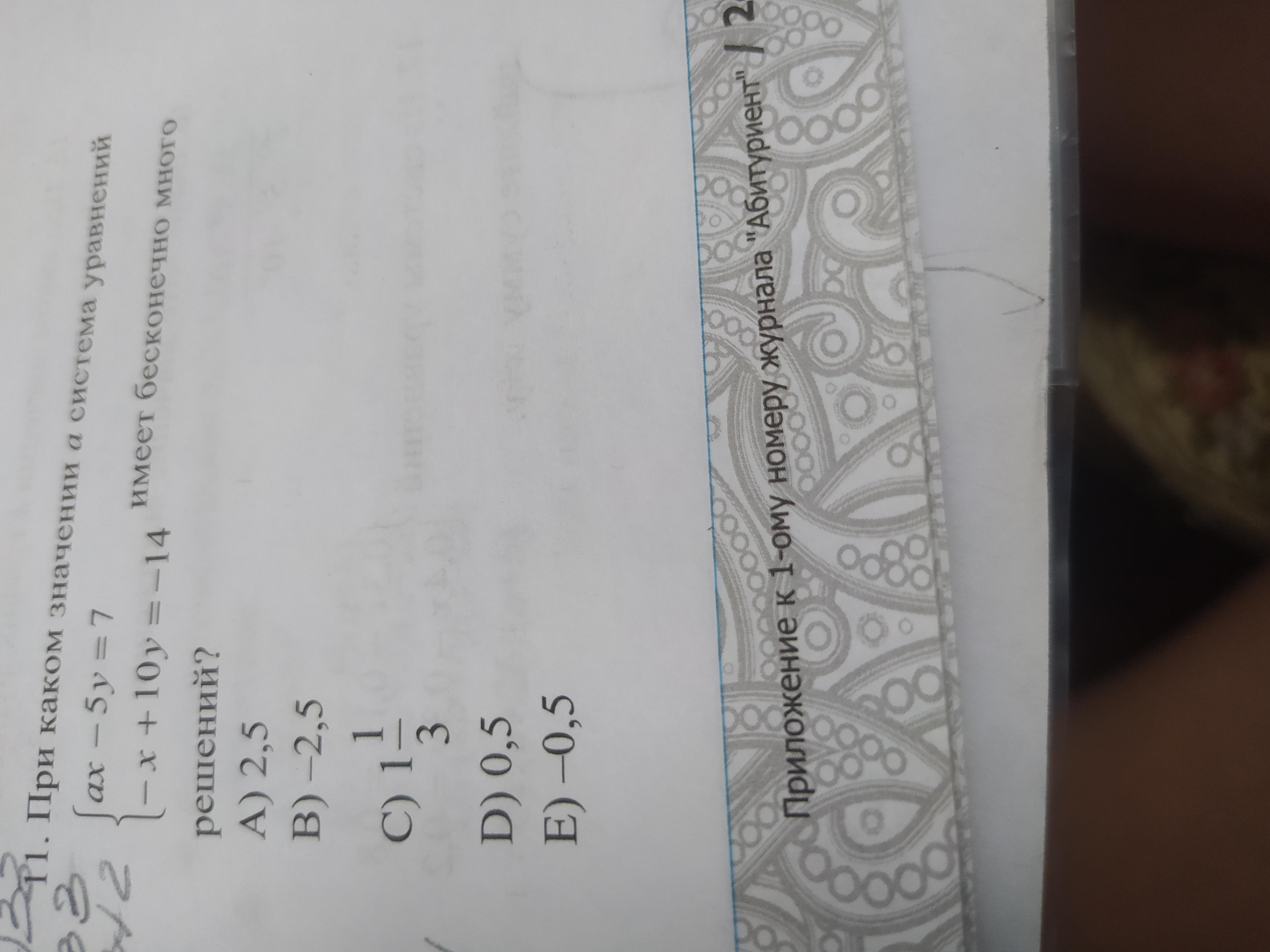 Пошаговое объяснение: если мы умножим первое уравнение на 2, получим ах-10у=14, число после равно и число с игреком сокращаются, получается, нам надо получить 1х, чтобы его получить, надо 0,5×2, получаем такую систему: