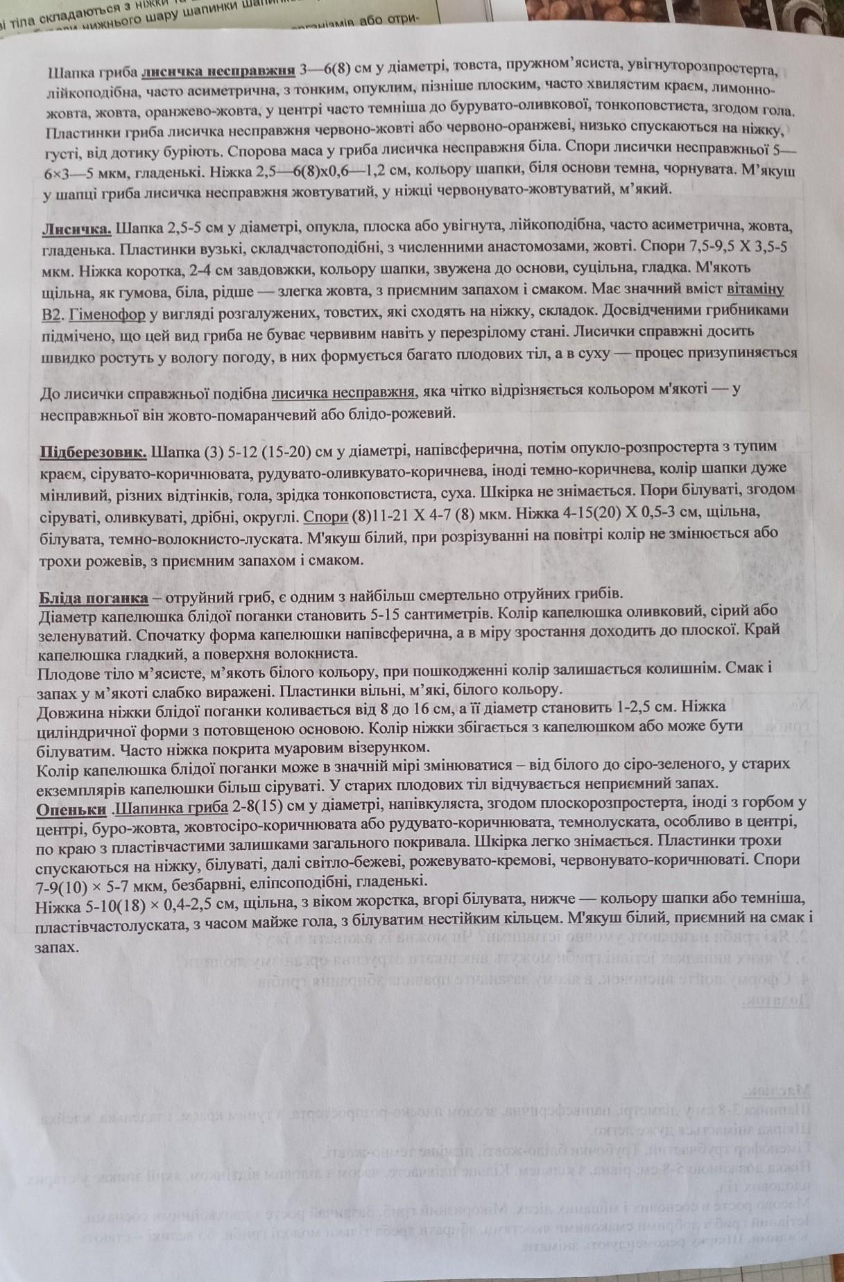 ДОПОМОЖІТЬ ПОТРІБНО НАПИСАТИ ЇСТІВНИЙ ЧИ ОТРУЙНИЙ ТА КОРОТКО НАПИСАТИ ХАРАКТЕРНІ ОЗНАКИ ЦИХ ГРИБІВ