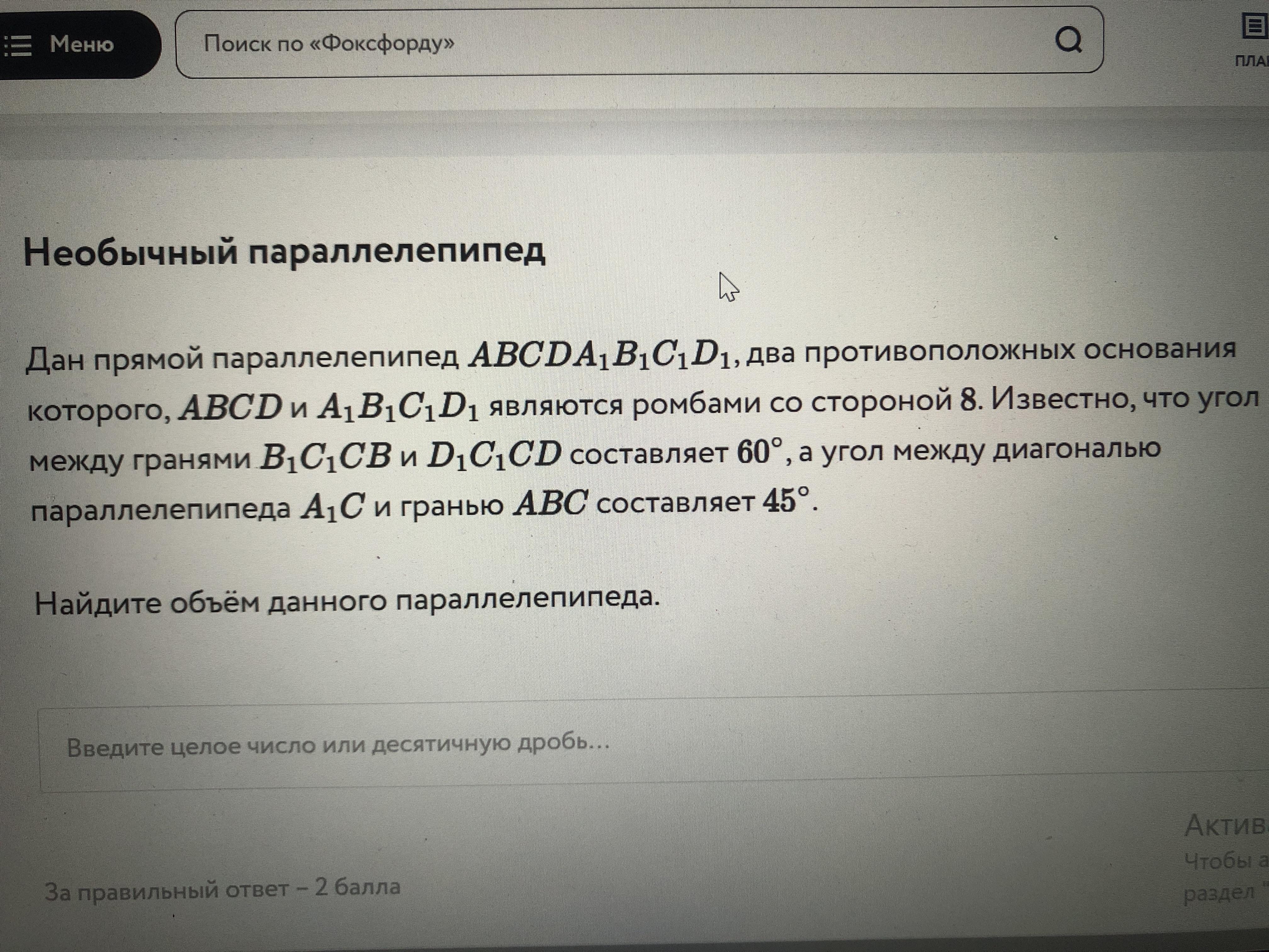 S(ABCD)=AD²•sin∠BCD=8²•sin60=