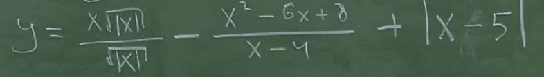 y = ( ( x√|x| )/ √| x | ) - (( x^2 - 6x + 8) / (x-4) ) + | x - 5 | =