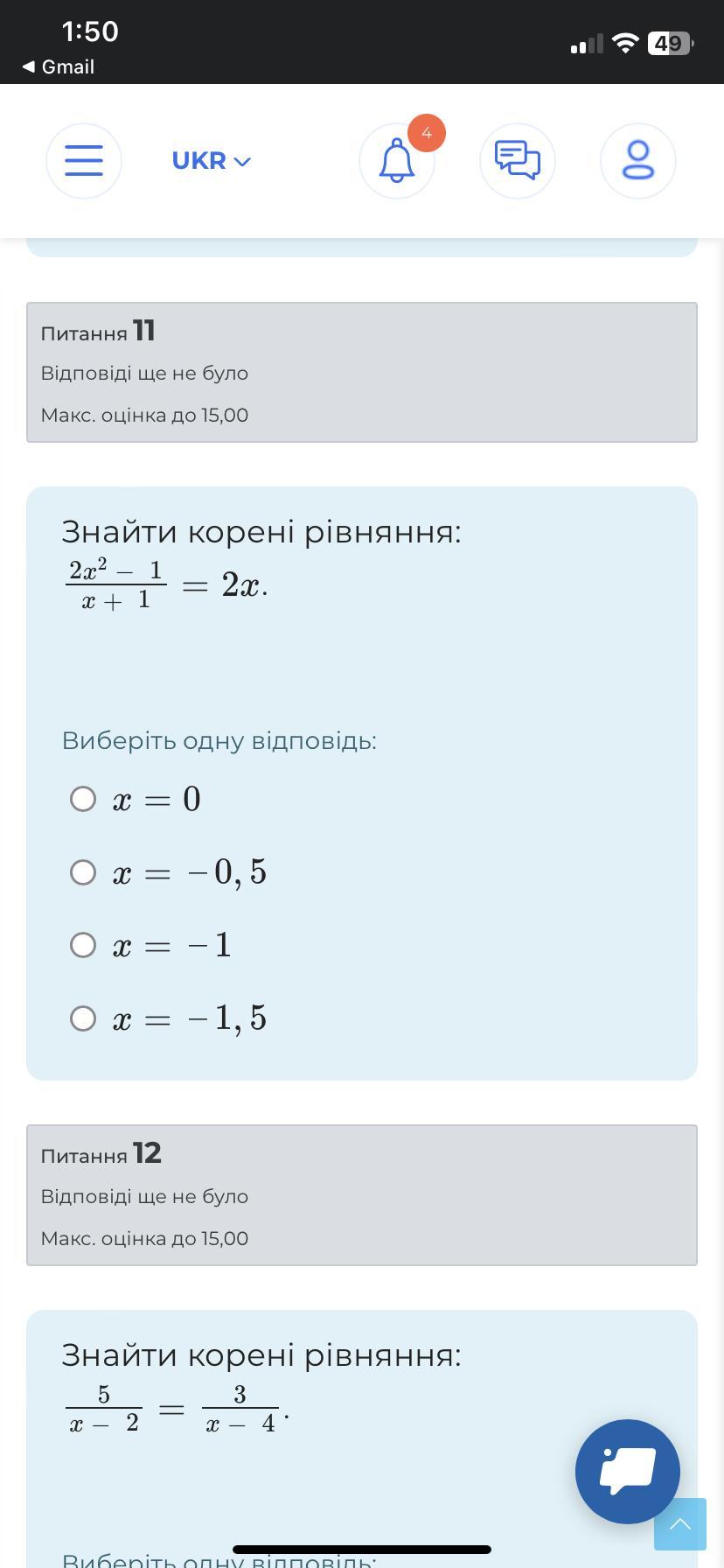 (2х² - 1)/(х + 1) = 2х; х ≠ -1