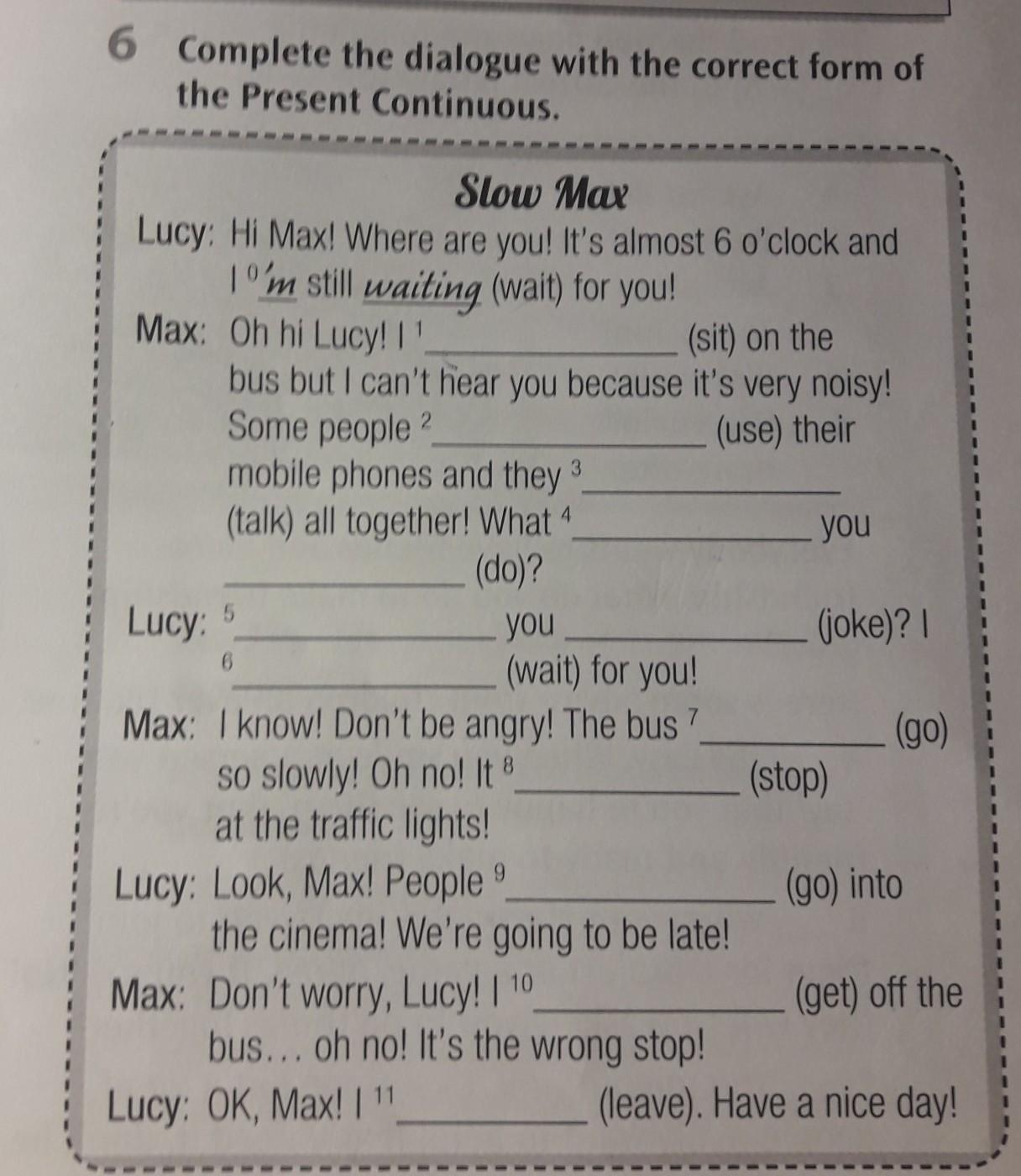 6. Complete the dialogue with the correct form of the Present Continuous. помогите пожалуйста