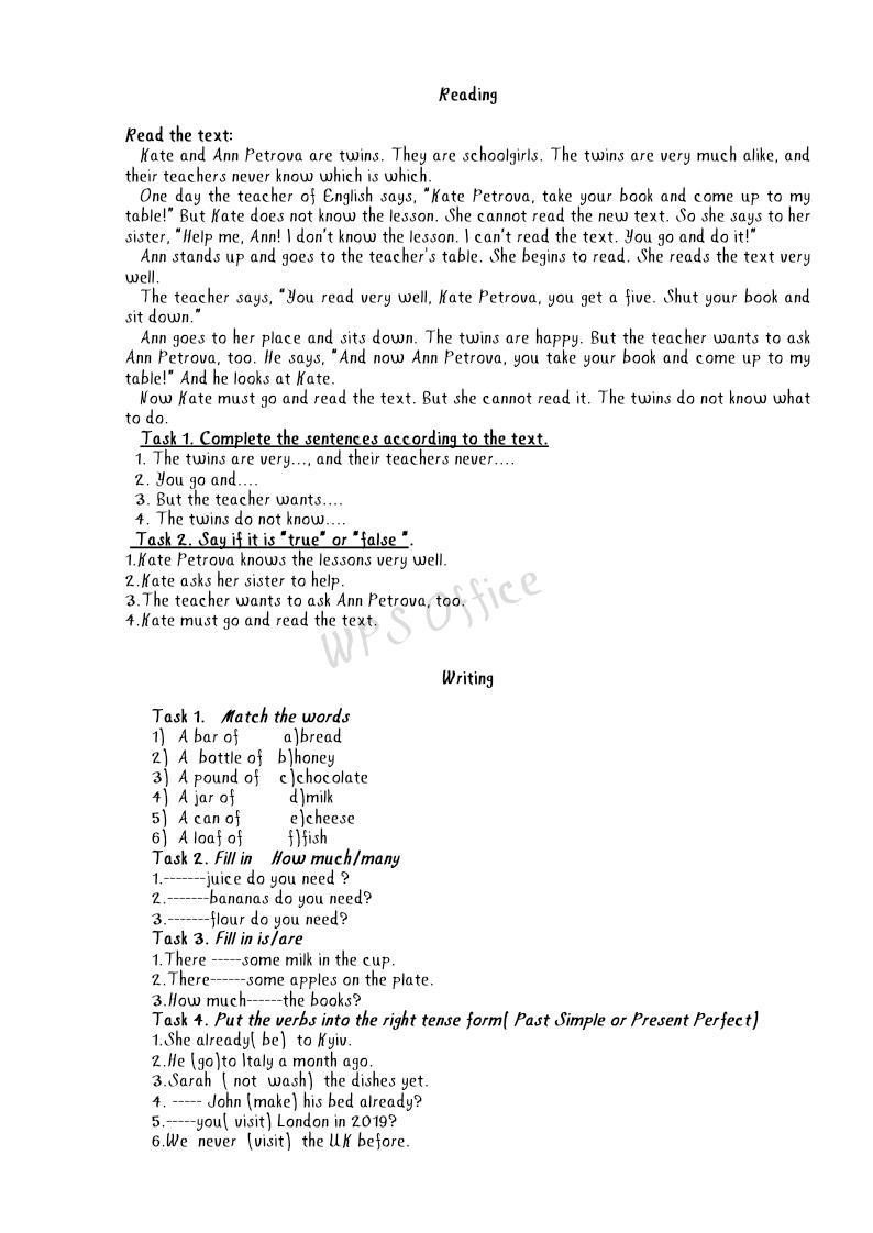4.Kate must go and read the text.(false)